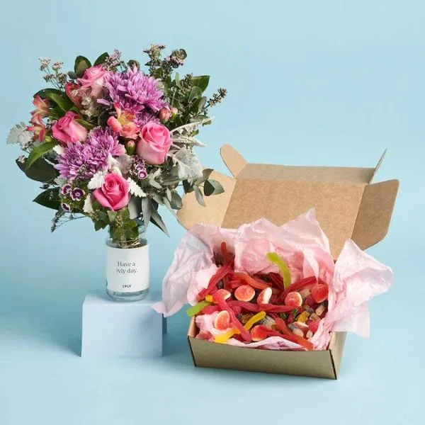 Delight your wife with this LVLY gift. A stunning jar of native Australian flavours is complemented perfectly by a 1kg assorted box of classic lollies.